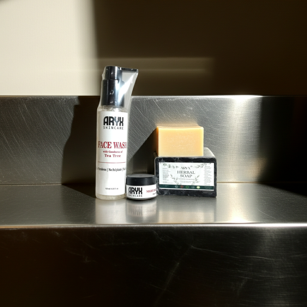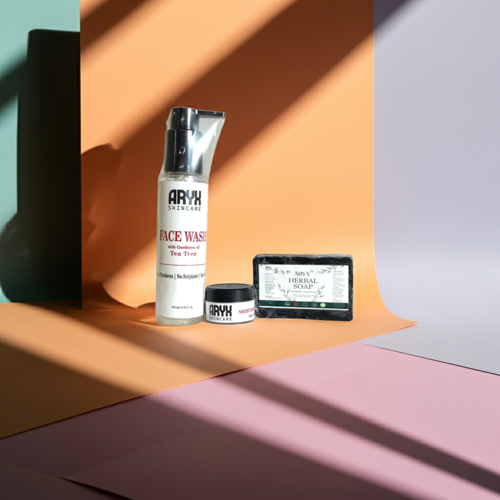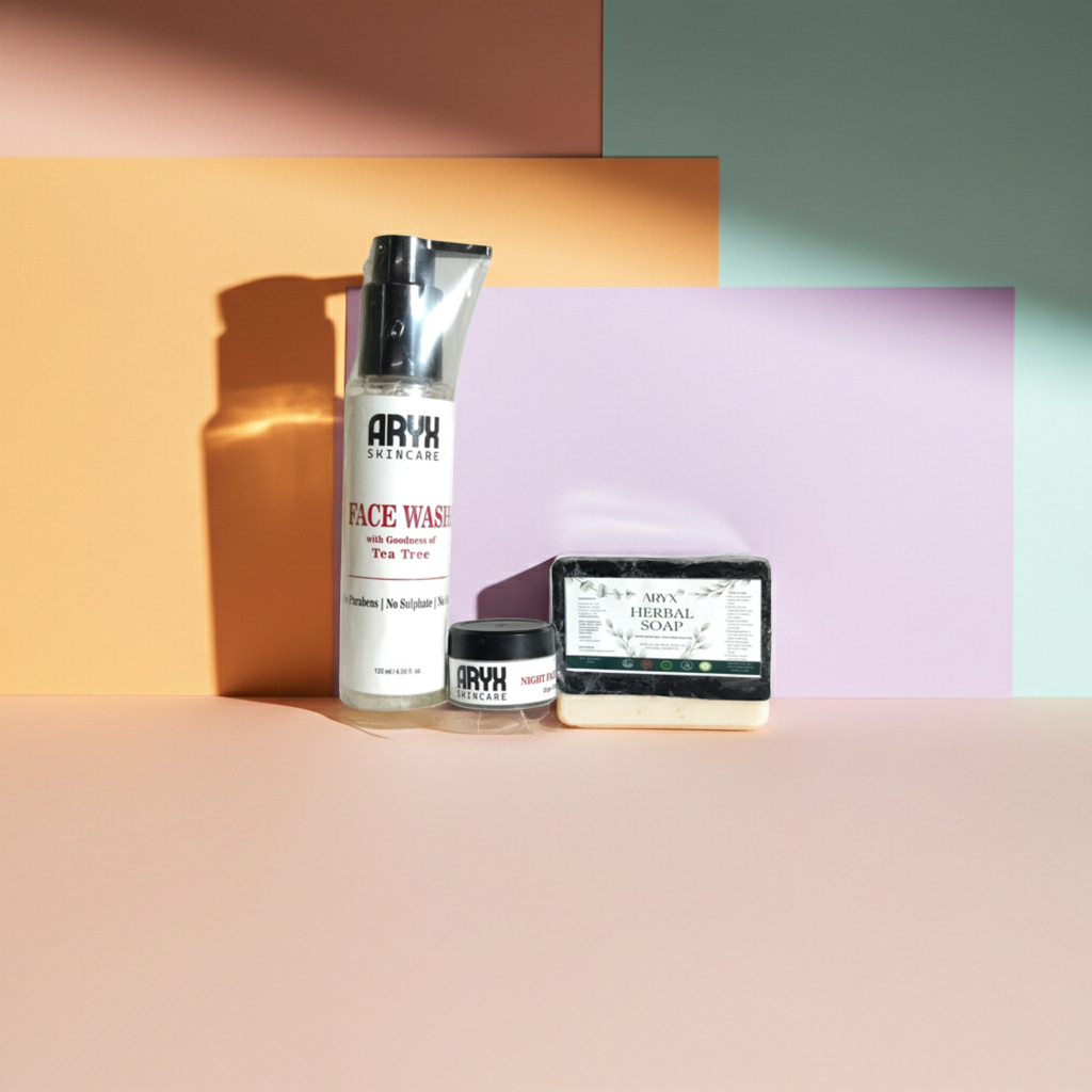 Powered by ARYX Herbal + Science Formula, this combo includes a gentle Herbal Face Wash, a nourishing Skin Whitening Night Cream, and a mild Herbal Soap that work together to remove impurities, improve skin brightness, and support overnight skin nourishment.