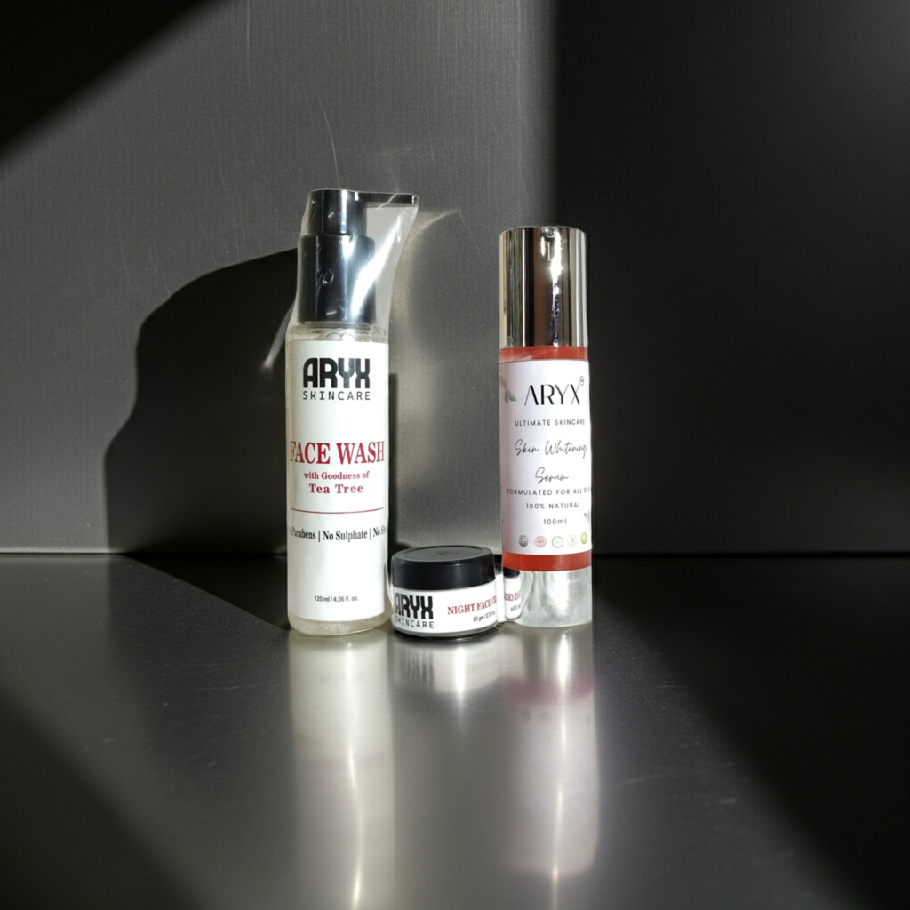 ARYX Skin Whitening Combo Platinum with Herbal Face Wash, Skin Whitening Serum and Night Cream helps brighten skin and improve overall skin appearance.